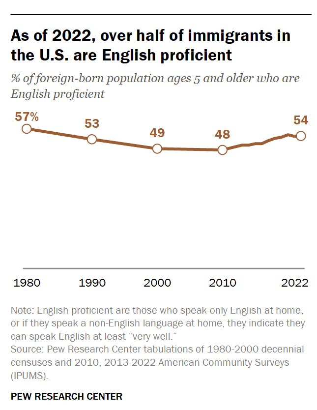 immigrants are returning to higher english literacy: there’s a great deal of unhelpful “speak english or go home” rhetoric in this country, but there’s been a clear uptick in literacy amongst immigrants in the past decade. it remains to be seen what the ceiling for immigrant literacy is, but this can only be a positive for native and foreign-born americans alike.